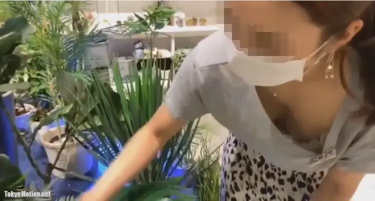 超美人な観葉植物屋の店員さんのルーズな胸元を至近距離から何度も盗撮した動画です。