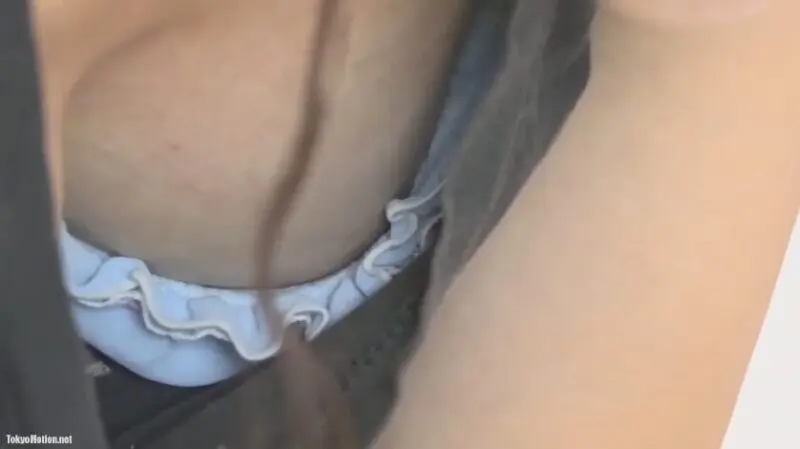 ブラジャーの隙間を狙いますが、なかなか乳首までは見せてくれません。。。